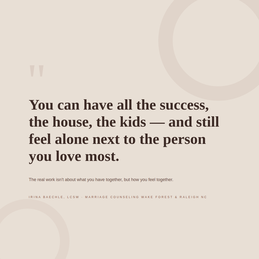 Because here's the truth: You can have all the success, the house, the kids, the vacations—and still feel alone next to the person you love most. The real work isn't about what you have together, but how you feel together.